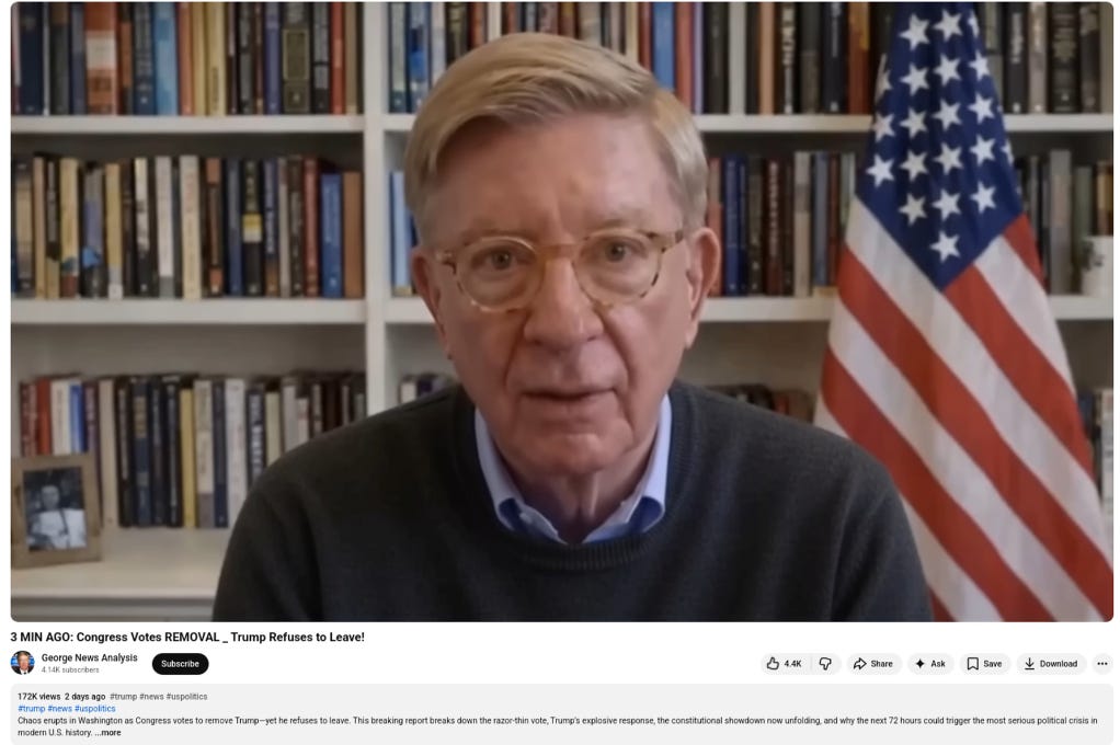 For example, this video, which featured an AI generated George Will (in general the fake AI news phenomenon is not a partisan problem) from the YouTube channel @GeorgeNewsAnalysis had over 172K views before removal.